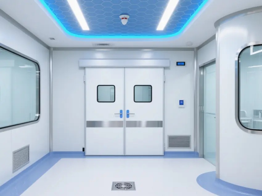 車間內設有多個玻璃門和窗戶,既保證了空間的通透感,又便于觀察內部情況。天花板上安裝了多盞方形的照明燈,提供充足的光線,同時還有通風設備,確??諝饬魍?。