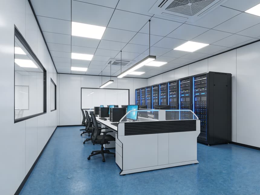 內(nèi)部研發(fā)空間均以藍色耐磨防靜電地坪搭配白色無縫抗菌墻面,視覺清爽且適配研發(fā)需求。藍色地面選用高耐磨環(huán)氧材質(zhì),具備良好的承重性與易清潔性,可耐受實驗試劑殘留擦拭,同時兼具輕微防靜電性能,保護精密研發(fā)設(shè)備;白色墻面采用環(huán)保抗菌涂層,平整度高且減少光線反射,搭配嵌入式護眼照明,營造舒適的研發(fā)視覺環(huán)境。