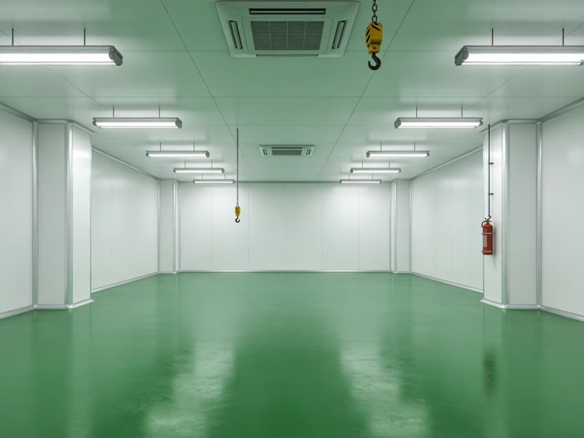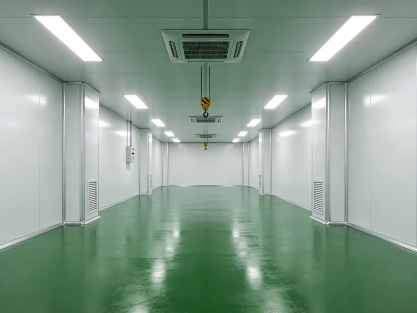 航天航空零件生產(chǎn)車間內(nèi)部施工以“超高精度、極致潔凈、抗擾穩(wěn)定”為核心,采用系列尖端工藝技術(shù),適配精密零件加工的嚴(yán)苛要求,同時實現(xiàn)地面綠色、墻壁白色的統(tǒng)一風(fēng)格。地面采用綠色防靜電耐磨環(huán)氧自流平工藝,經(jīng)基層拋丸強(qiáng)化、高滲透界面劑處理、環(huán)氧砂漿精準(zhǔn)找平、自流平罩面固化四道核心工序,表面平整度誤差控制在0.5mm/m內(nèi),防靜電性能達(dá)10?-10?Ω,抗壓強(qiáng)度超C40,可耐受精密設(shè)備碾壓與切削液侵蝕。