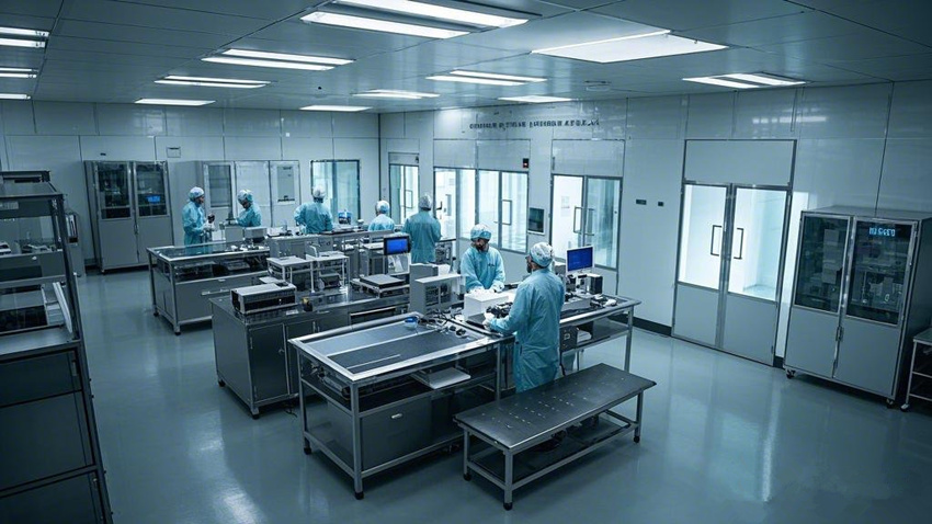 1000平方米的電子無塵車間,宛如一座現代科技的圣殿,以其無與倫比的潔凈與井然有序,彰顯出對高科技產品生產的極致追求。空間內,每一寸都透露著現代科技風格的冷峻與