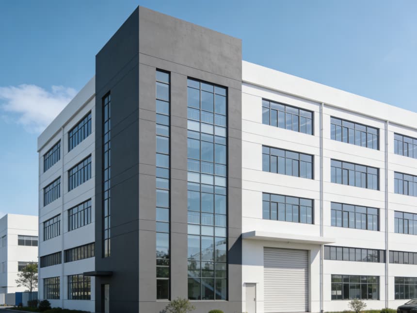 本次呈現的半導體器件生產廠房整體風格簡約專業,兼具工業嚴謹性與潔凈生產適配性。廠房外立面采用淺灰色工業涂層搭配大面積隔音保溫玻璃,既保障建筑密封性,又滿足車間自然采光需求,入口區域預留潔凈風淋室安裝位,從源頭把控潔凈度。
