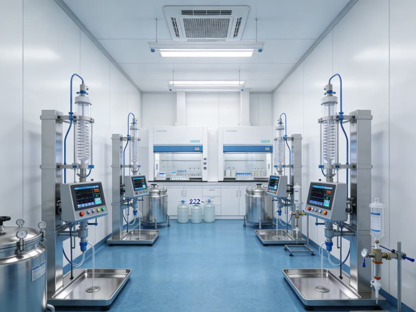 白色墻面采用食品級潔凈抗菌涂層,推行無縫拼接與高精度找直工藝,陰陽角采用R50圓弧倒角設計,徹底消除清潔死角。車間科學劃分細胞培養區、病毒載體構建區、純化區等功能區域,各區域均配備獨立層流凈化系統與負壓防護裝置,細胞培養區預留恒溫恒濕調控接口,純化區預設無菌物料傳遞窗口,全方位保障CGT研發生產的安全性、合規性與穩定性。