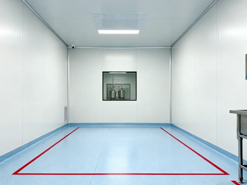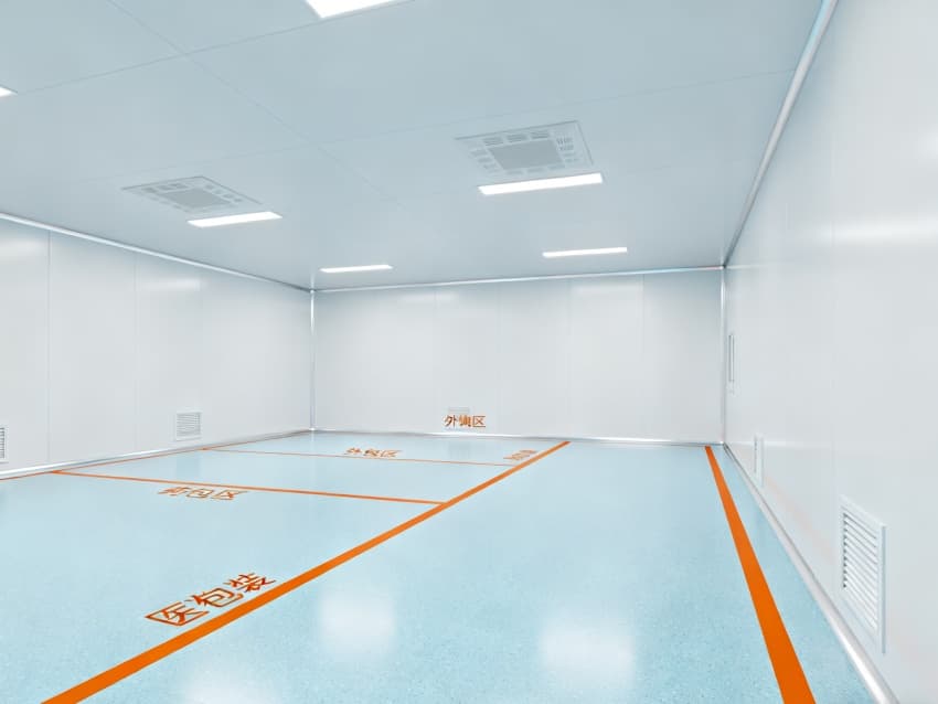 車間整體風(fēng)格潔凈統(tǒng)一,地面采用淺藍(lán)色耐腐抗菌環(huán)氧材質(zhì),無縫拼接工藝杜絕衛(wèi)生死角,耐消毒藥劑侵蝕且易清潔;四周白色抗菌墻壁經(jīng)納米涂層處理,粉塵附著率極低,配合頂部高效空氣過濾系統(tǒng),穩(wěn)定維持萬級潔凈度,契合醫(yī)藥用品生產(chǎn)對無菌環(huán)境的嚴(yán)苛要求。