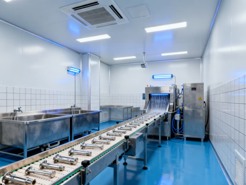 凈化配套設計全面:藍色地面具備抗菌、易消殺特性,配合地面導坡設計加速清潔排水,減少污漬殘留;白色墻面采用無縫抗菌涂層,消除清潔死角,降低微生物附著風險;全車間劃分獨立凈化分區(qū),通過壓差控制預留設計隔絕不同潔凈等級區(qū)域,人流、物流通道分離避免交叉污染,全方位保障無菌生產(chǎn)環(huán)境穩(wěn)定達標。
