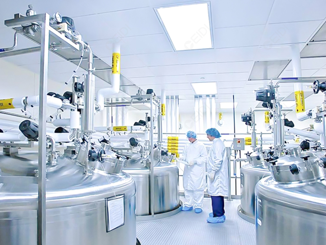 2010版GMP對潔凈室內部裝飾提出了以下兩條要求:潔凈區的內表面(墻壁、地面、天棚)應當平整光滑、無裂縫、接口嚴密、無顆粒物脫落,避免積塵,便于有效清潔,必要時應當進行消毒(第四十九條)。各種管道、照明設施、風口和其他公用設施的設計和安裝應當避免出現不易清潔的部位,應當盡可能在生產區外部對其進行維護(第五十條)。具體實施體現在材料及施工工藝,可參照以下要求。在潔凈室設計中,任何表面材料必須能抵抗微生物生長,不允許采用有機材料及木制品。在潔凈區域,墻、地面、吊頂的內表面必須光滑,無裂紋,無細孔,不起塵,易清潔,可耐受潔凈室日常使用的消毒劑。目前藥廠的項目均采用彩鋼板,并通過頂圓弧和墻圓弧過渡,不易積塵,也存在局部非直接生產區域如潔凈樓梯間的部分墻面采用環氧墻面涂料也是符合GMP要求的。
