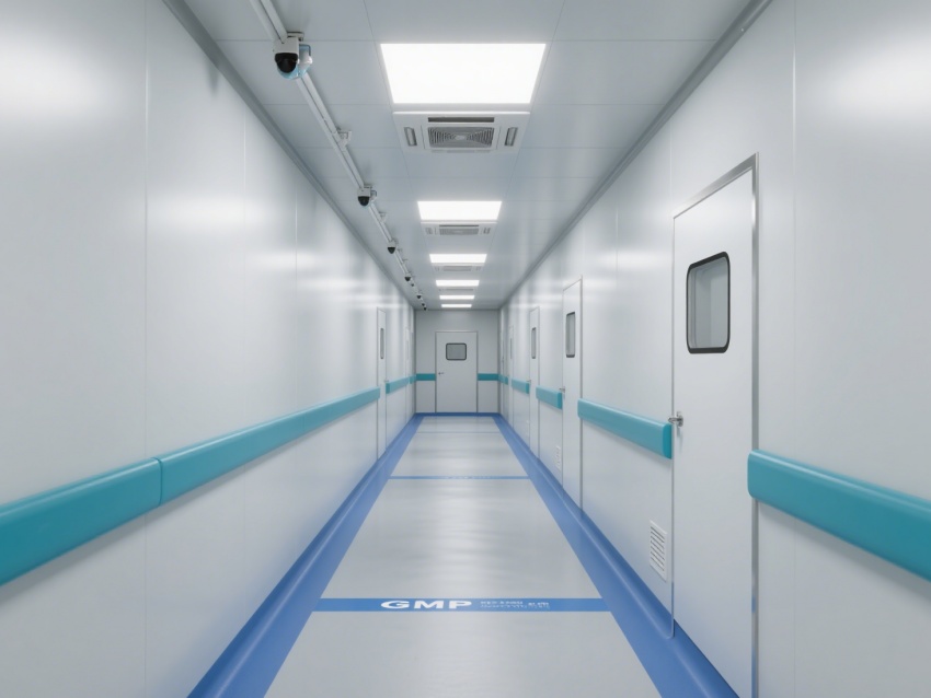 該藥劑生產車間嚴格遵循GMP(藥品生產質量管理規范)標準建設。車間以白色為主色調,搭配藍色標識系統,營造出潔凈、規范的生產環境。墻面、地面采用無縫抗菌材質,便于清潔消毒,防止藥劑生產過程中受到污染。