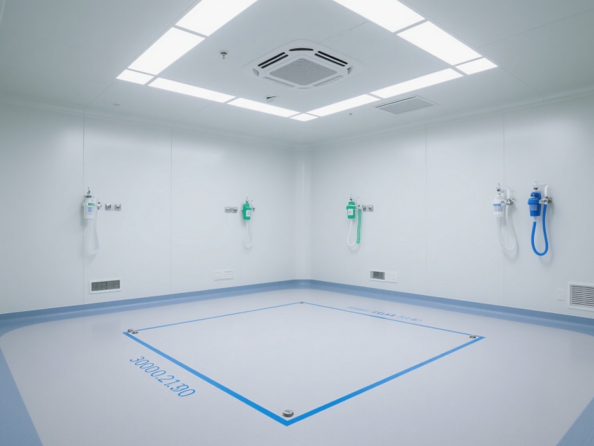 該醫(yī)療無塵室是為醫(yī)療診療與精密操作打造的專業(yè)潔凈空間。室內(nèi)以白色為主調(diào),搭配藍(lán)色標(biāo)識(shí)系統(tǒng),墻面、地面采用無縫抗菌材質(zhì),便于清潔消毒,有效防止微生物與灰塵污染。